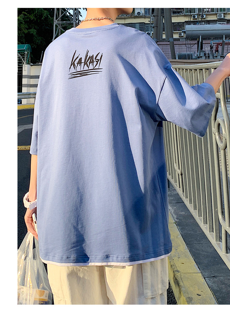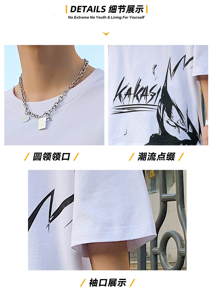 純棉舒適】夏季新款男士圓領短袖時尚火影印花半袖T恤