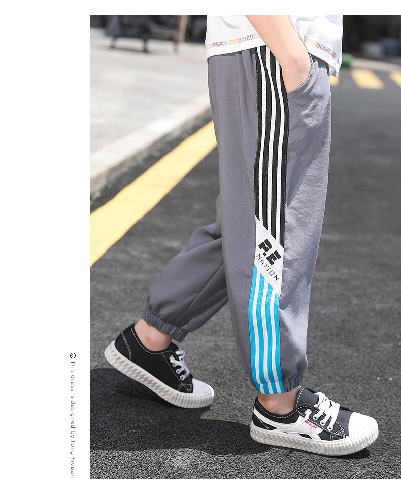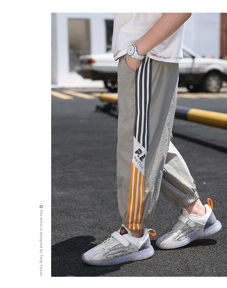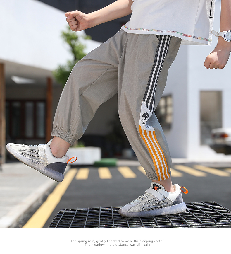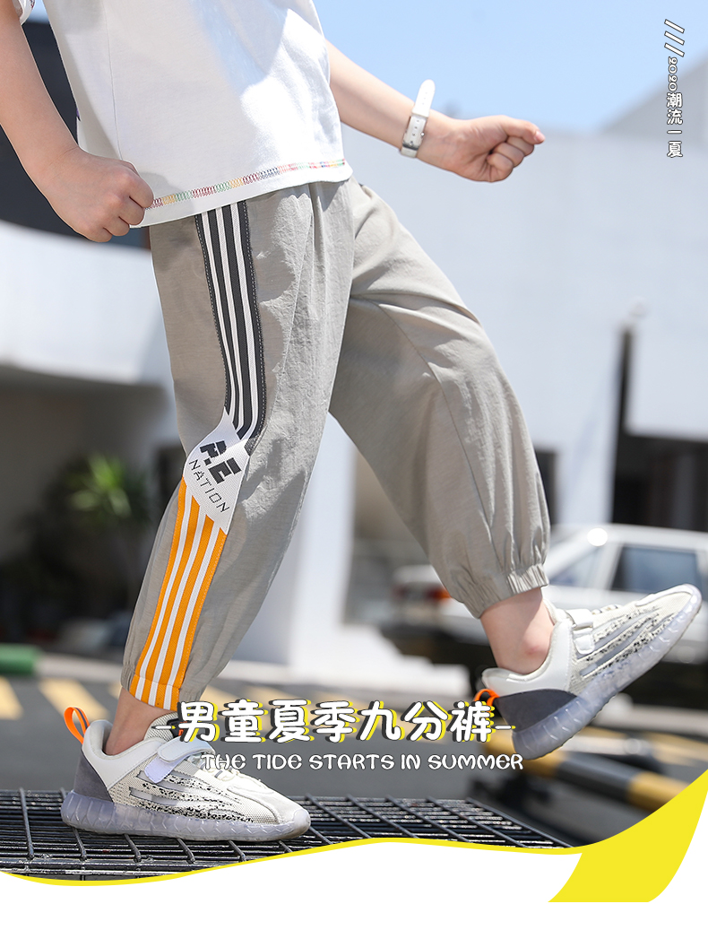 浪莎男童褲子運動長褲子兒童裝2021新款夏裝洋氣中大童百搭束腳褲