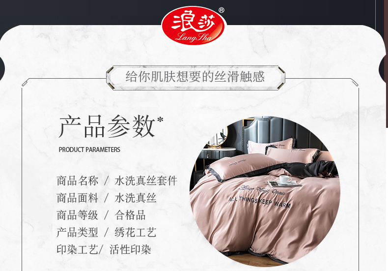 浪莎四件套水洗真絲北歐風(fēng)被套床笠床單裸睡冰絲春夏秋季床上用品
