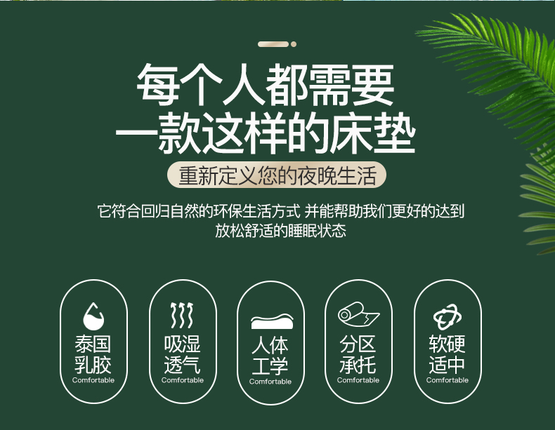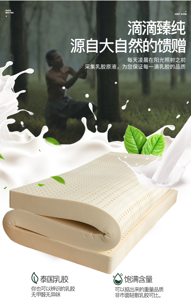 浪莎乳膠床墊泰國天然橡膠1.8m床純10cm席夢思兒童1.5米5cm進口