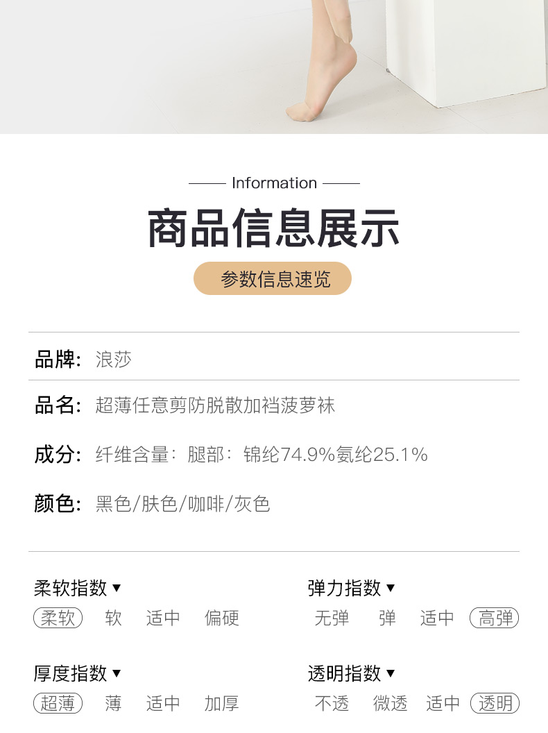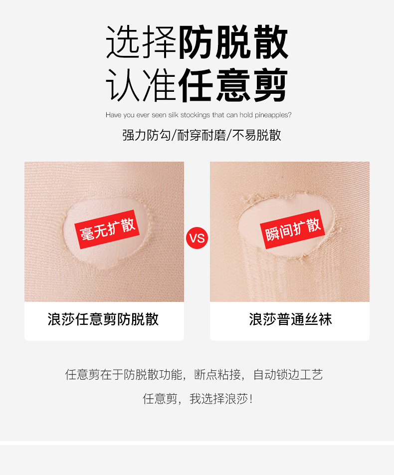 浪莎絲襪女防脫散菠蘿襪 防勾絲連褲襪夏天黑肉色長筒絲襪薄款