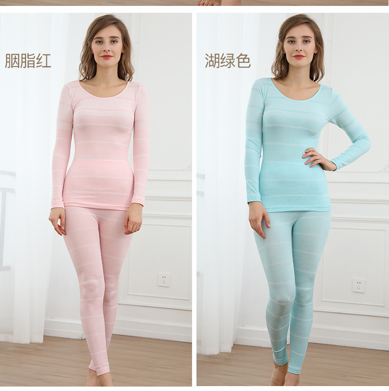 浪莎無(wú)縫提花美體保暖內(nèi)衣套裝女士緊修身薄款秋衣秋褲性感打底冬